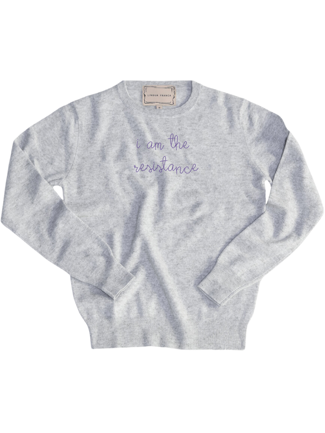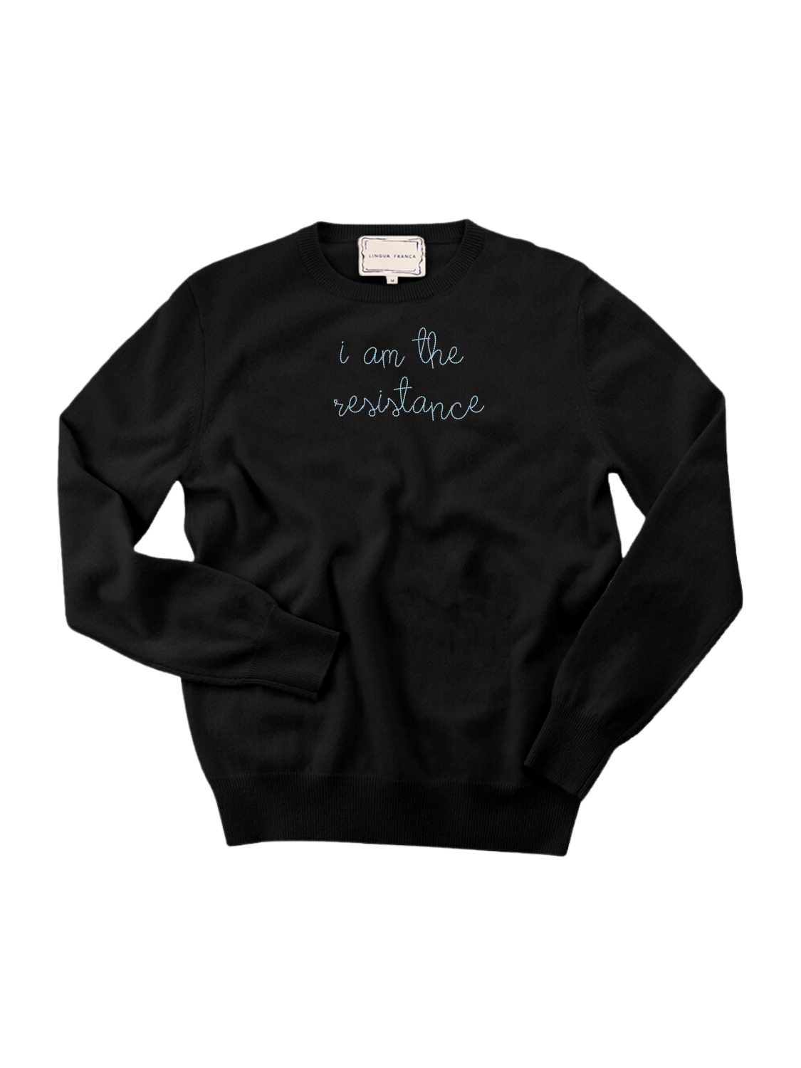 Our classic cashmere crewneck with "i am the resistance" hand-embroidered across the front.