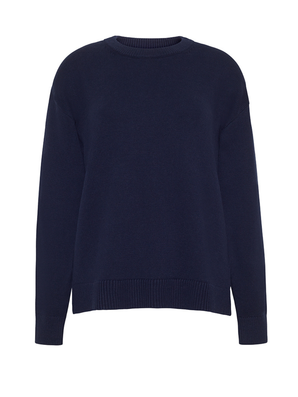 True to size. Dropped shoulders create a timeless, semi-oversized look. Size down for a closer fit. If you are between sizes, we recommend sizing up.