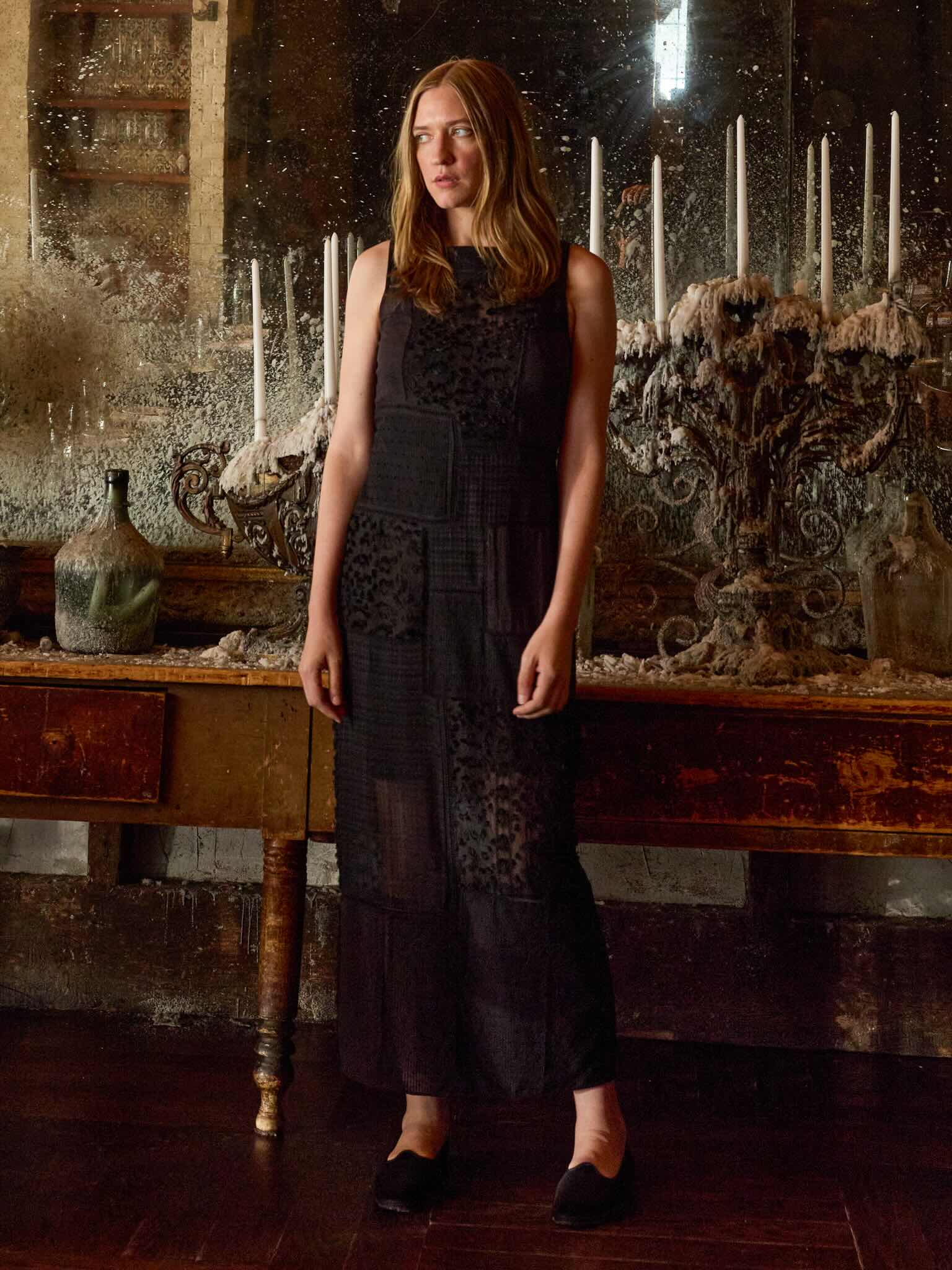 A dress with heirloom charm. The Mammina Dress is a patchwork cotton maxi, featuring delicate inlaid lace trim and a subtle back slit for ease of movement. Designed to sit close to the body, it creates a soft, sculpted silhouette while maintaining an effortless feel. Finished with a viscose slip.