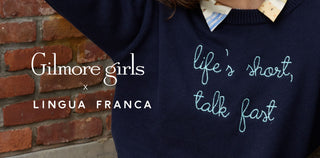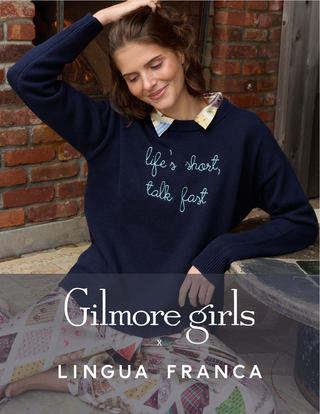 We’re thrilled to officially celebrate 25 years of Gilmore Girls with a collaboration inspired by the fast-talking, coffee-drinking, small-town magic of Stars Hollow. This collection brings iconic moments and quotes from the show to life, one stitch at a time, on our newest cotton-cashmere crewneck, The Maxine.