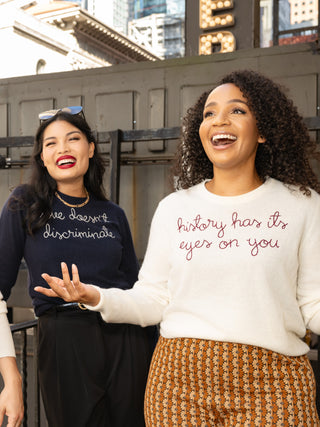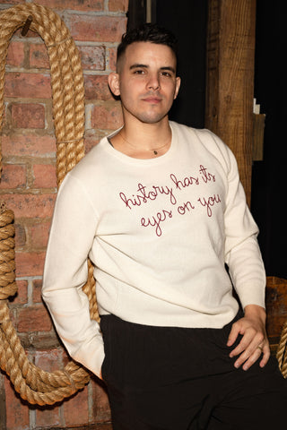 To celebrate the 10-year anniversary of Hamilton, Lingua Franca has teamed up with the iconic Broadway musical on a limited-edition collection that brings the show's revolutionary spirit to life—one stitch at a time. From some of its most unforgettable lyrics to the instantly recognizable Hamilton logo, this drop features custom embroidery on our best-selling sweaters and sweatshirts for Men, Women, and Kids.