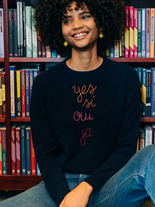 "yes si oui ja" Crewneck Cashmere Core LINGUA FRANCA NYC