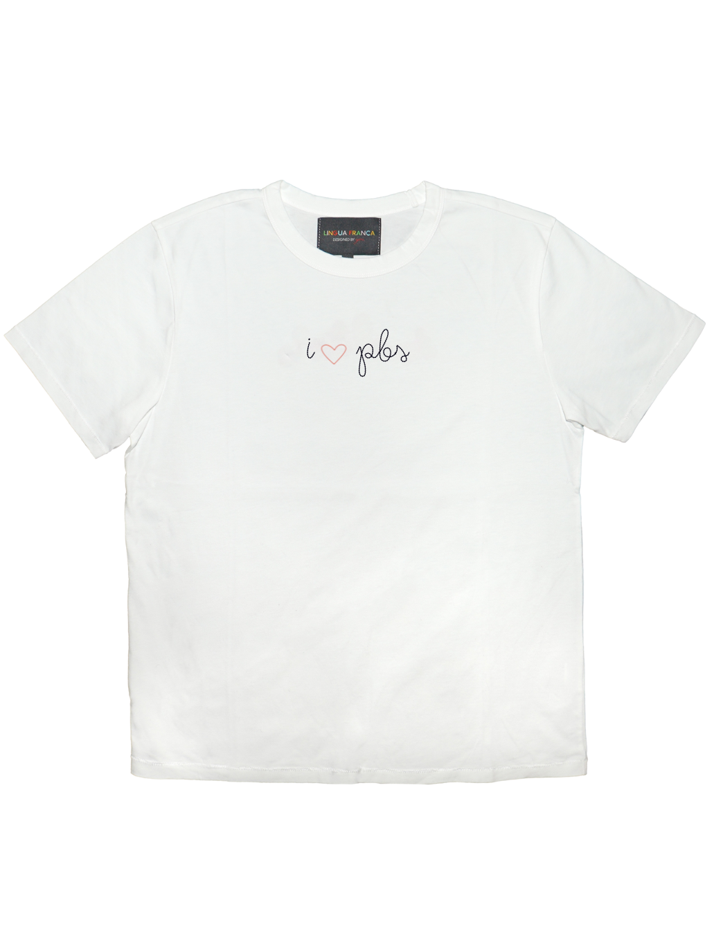 Our tees are ethically made with 100% organic cotton in a SMETA certified factory (SMETA certifications ensure a high standard of labor rights, health and safety regulations, and ethical environmental and business practices), and feature the embroidered phrase, "i heart pbs".