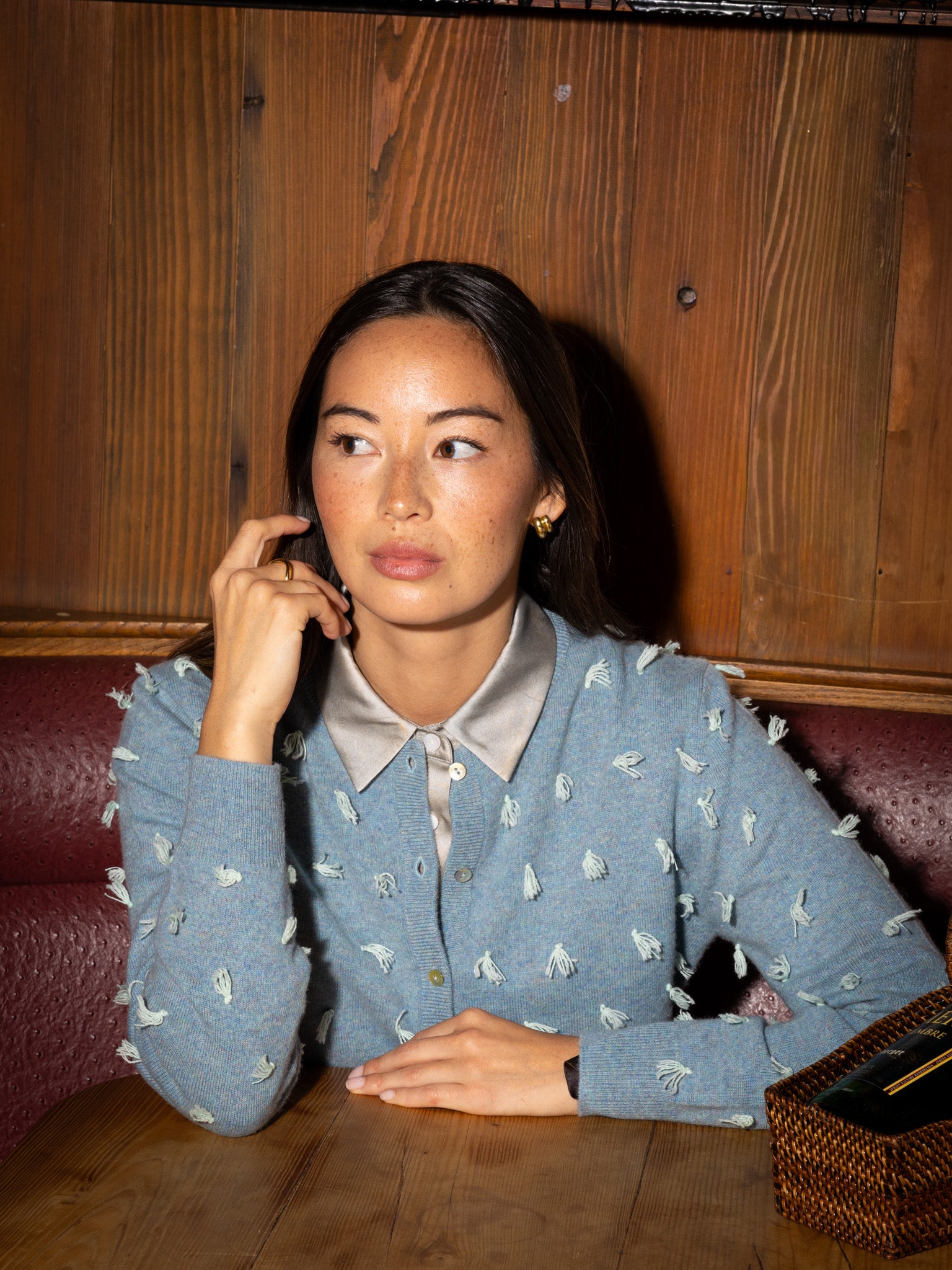 This cashmere cardigan features our signature hand quilt knot embroidery, a meaningful symbol woven throughout the Resort 26 collection. Designed with a clean, relaxed silhouette, it’s finished with ribbed cuffs and hem for subtle structure and comfort.