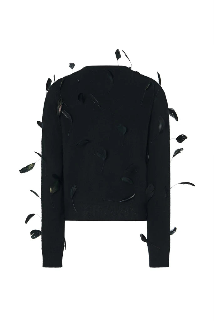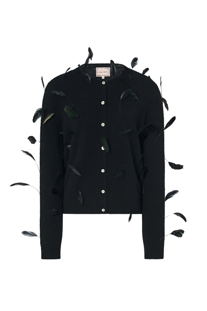 Channel your inner Elton (John, of course) in this one-of-a-kind cardigan reminiscent of the legendary performer's striking costumes. Our signature cashmere cardigan is adorned in ethically sourced feathers to create a showstopping silhouette without sacrificing comfort.