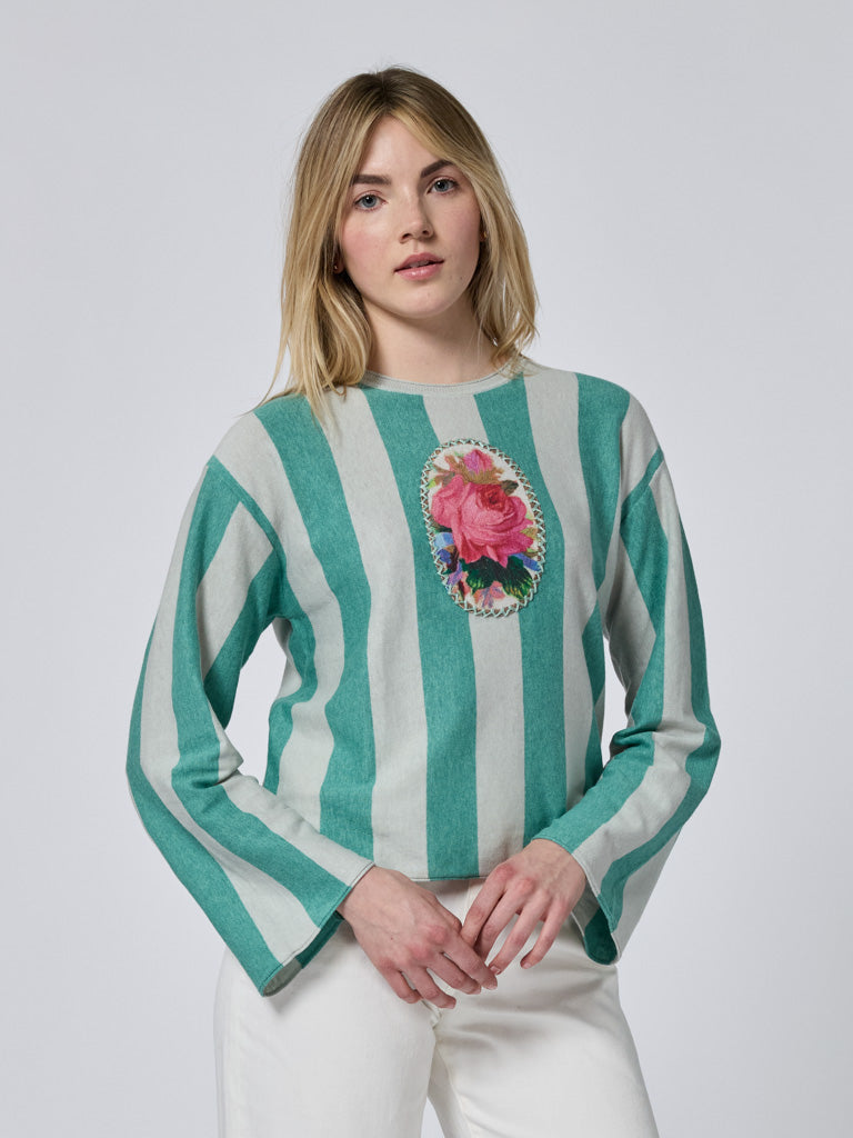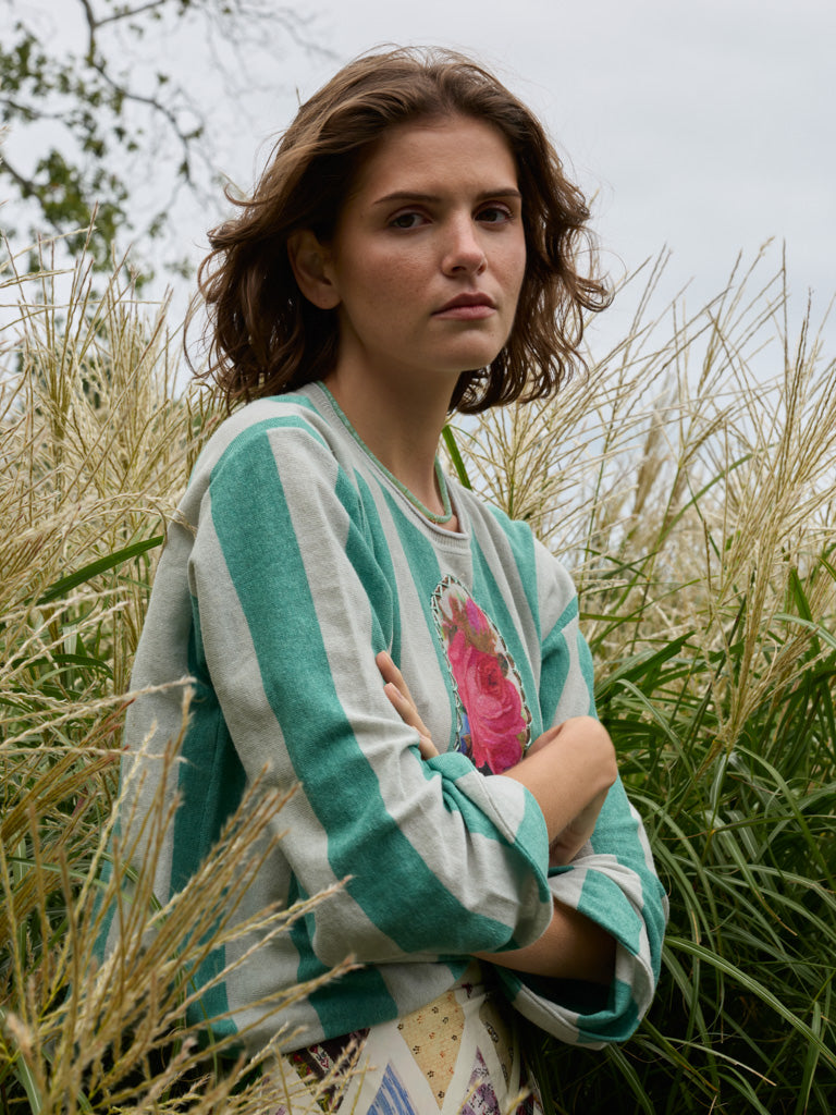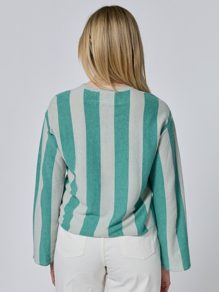 The Longfellow Crewneck is a women’s oversized striped crewneck sweater in fresh mint, inspired by vintage rugby shirts. Designed with a relaxed, easy fit, it feels familiar and comfortable for everyday wear.