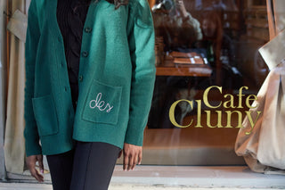 Meet the Cluny Cardigan, the latest addition to our customizable core collection.. Crafted from 100% wool, it blends heritage craftsmanship with modern ease. Its oversized silhouette drapes effortlessly, lending that borrowed feel that still looks perfectly polished. Whether tossed over denim or layered with a dress, the Cluny adds instant character to any look. Modeled by the lovely staff at our neighborhood favorite, Cafe Cluny in the West Village.
