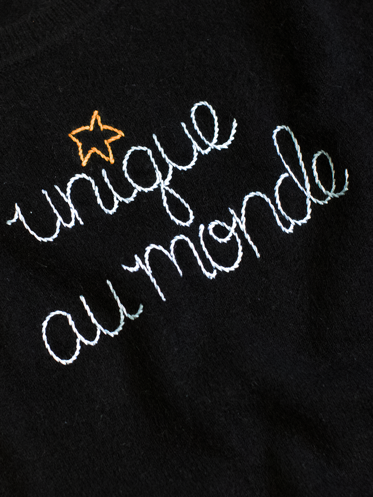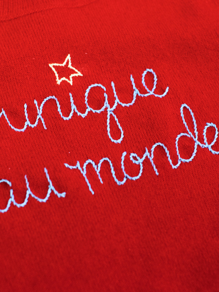 This Lingua Franca piece is hand embroidered to order. Please allow about 3-4 weeks for embroidery, plus shipping time (1-5 days).