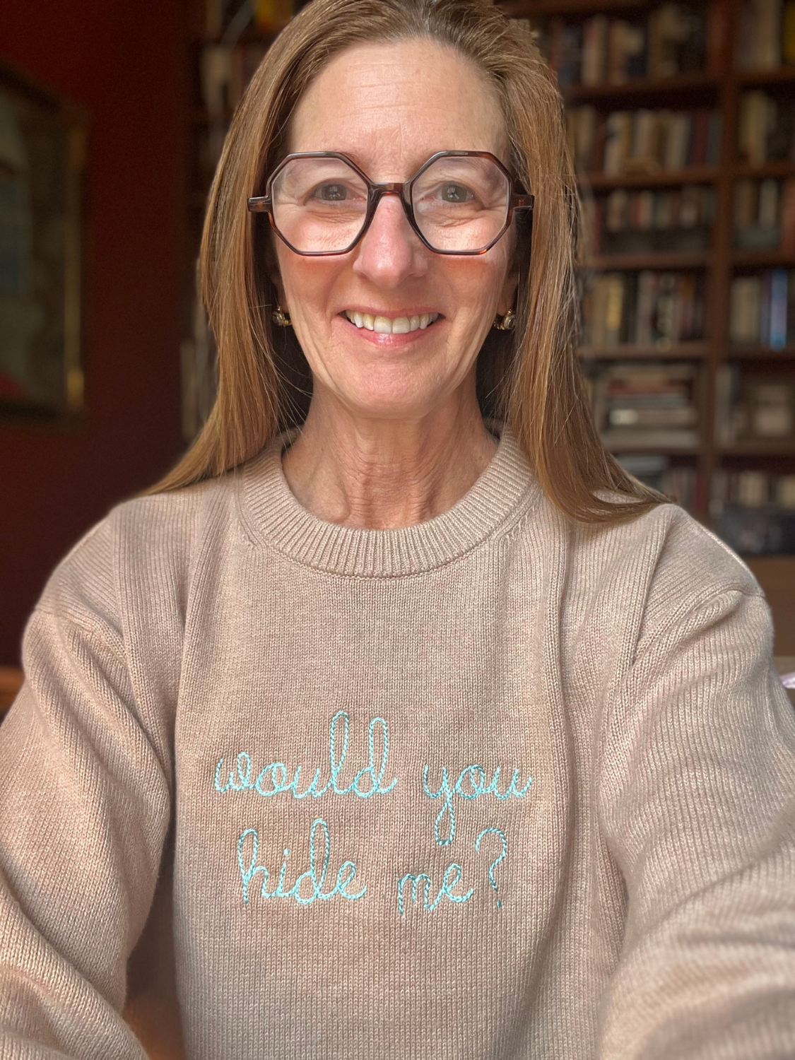 20% of proceeds from each sweater purchased supports The Weber Family Arts Foundation. WFAF was created to challenge antisemitism, prejudice and intolerance by supporting artists who use their creative voices to inspire empathy.