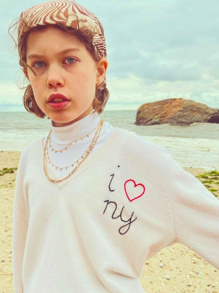 Black or Cream with hand embroidery. 100% Cashmere. Hand-stitched in NYC.